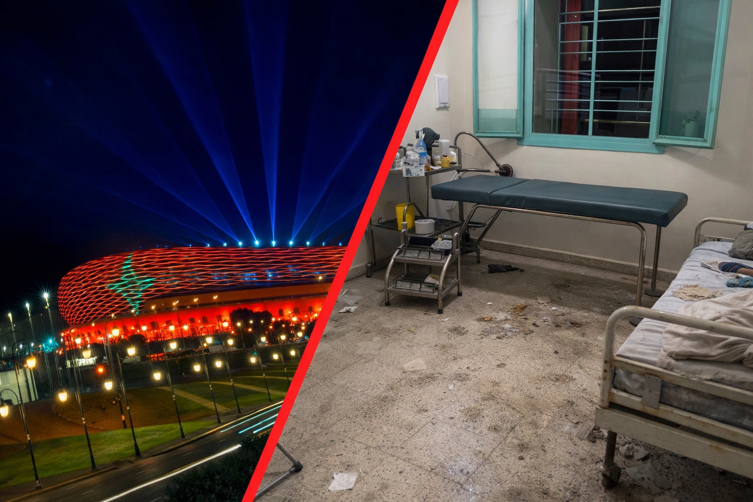 Terwijl de Marokkaanse overheid miljarden pompt in glimmende stadions en luxe voetbalacademies, piept en kraakt de basis van de samenleving aan alle kanten. Dat is voornamelijk zichtbaar in de gezondheidszorg, waar de totale uitgaven blijven steken rond 5,7 procent van het bbp, een niveau dat onvoldoende is voor een land met een snelgroeiende bevolking. De structurele onderinvestering vertaalt zich direct in een schrijnend tekort aan zorgpersoneel. Marokko telt ongeveer 7,8 artsen per 10.000 inwoners, terwijl de Wereldgezondheidsorganisatie een richtlijn van minstens 23 hanteert.
